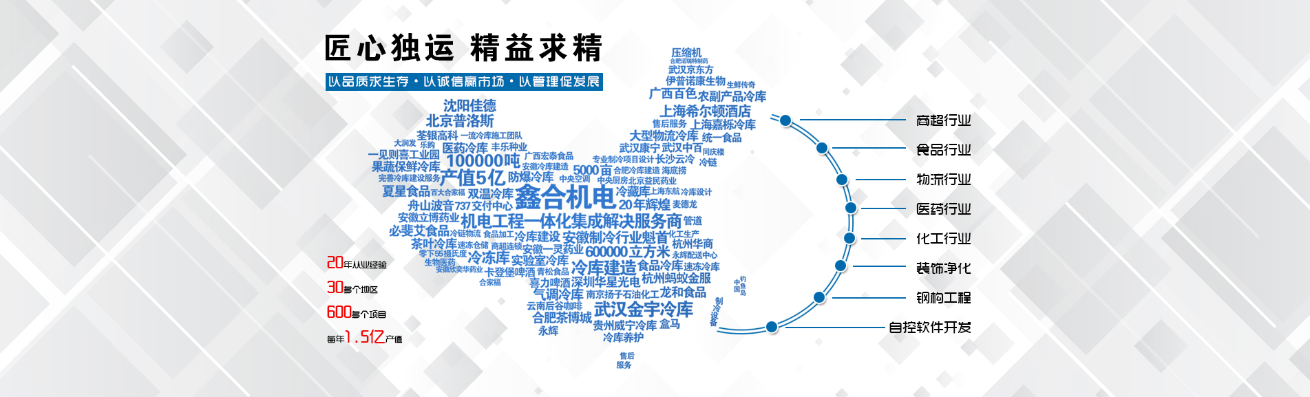 安徽鑫合機(jī)電設(shè)備有限公司于2002年組建運營,專業(yè)從事冷凍、冷藏庫、中央空調(diào)、醫(yī)藥凈化工程的規(guī)劃設(shè)計、施工承建、售后服務(wù)為一體的綜合性工程公司,與100多家實力雄厚的大中型企業(yè)建立長期產(chǎn)略合作關(guān)系,其中有多家世界500強和上市企業(yè)。公司作為中國倉儲與配送協(xié)會會員單位、安徽省制冷學(xué)會理事單位、上海楊浦區(qū)制冷協(xié)會工程總承包負(fù)責(zé)單位,引領(lǐng)于行業(yè)前沿。我們將銘記給予我們大力支持的各界新老朋友及合作伙伴,我們將會保持“互惠互利、共同發(fā)展”的原則與您共創(chuàng)雙嬴的合作關(guān)系。